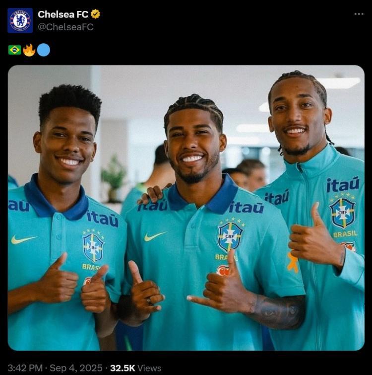 01月 19 2026 0 入选本期巴西队,切尔西社媒晒若昂-佩德罗等三人合照 xiaoqiao 2026-01-19 法甲 175 直播吧9月4日讯 国际比赛日,巴西将在世预赛对阵智利以及玻利维亚。切尔西球员安德烈-桑托斯、埃斯特旺以及若昂-佩德罗入选了本期巴西国家队名单。切尔西官方社媒更新,晒出了三人身穿巴西队球衣的合照。